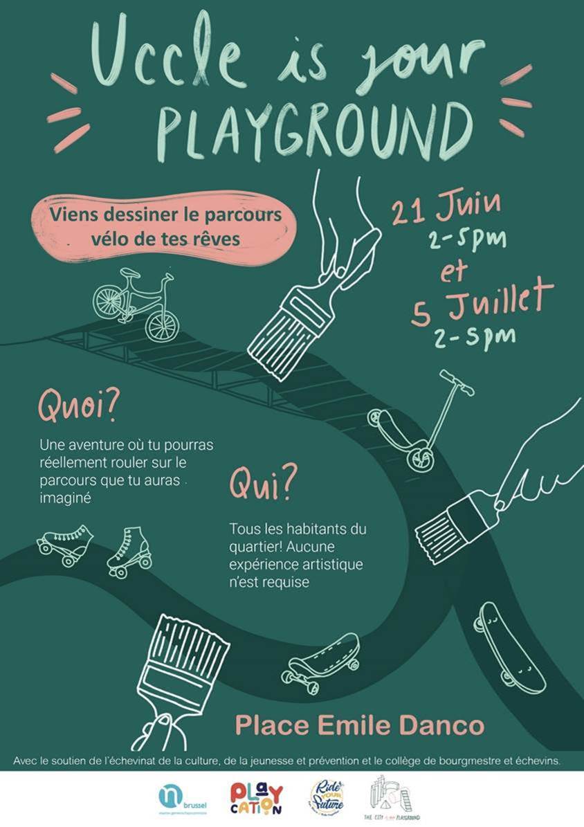 Uccle propose un chouette projet pour rendre la ville à la mesure des enfants. Cet été, la place Emile Danco et le parking de la salle de sport Jacques Van Offelen, seront le théâtre de nombreuses activités. En collaboration avec les accompagnateurs de Ride your Future et les artistes de The City is our Playground, les services Culture, Jeunesse et Prévention transforment ces deux sites en espaces ludiques et ouverts. Destinés à tous, et en particulier aux enfants et aux jeunes.