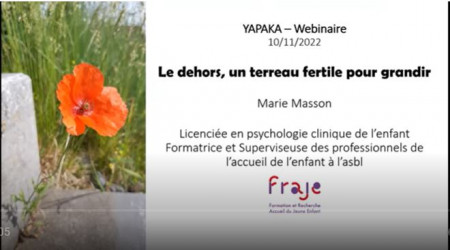 Au cours de ce webinaire, Marie Masson a revisité à la lumière du dehors, les différentes dimensions développementales de l’enfant de 2 ans et demi à 12 ans.