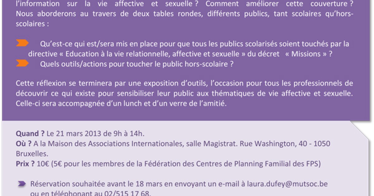 La Fédération des Centres de Planning Familial des Fps vous invite à leur journée d’étude : améliorer l’accès à l’information sur la vie affective et sexuelle pour tous.