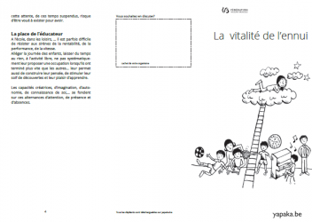 Alléger la journée des enfants, laisser du temps au rien, à l’activité libre, ne pas systématiquement leur proposer une occupation lorsqu’ils ont terminé plus vite que les autres… leur permet aussi de construire leur pensée, de stimuler leur soif de découvertes et leur plaisir d’apprendre.